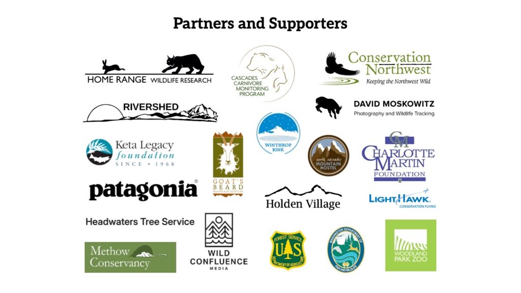 We work in collaboration with USFS, Conservation Northwest, Woodland Park Zoo, and the Wildlife Conservation Society Canada. We’re supported by Patagonia in partnership with The Goat’s Beard Mountain Supplies, the Charlotte Martin Foundation, and individual donors.